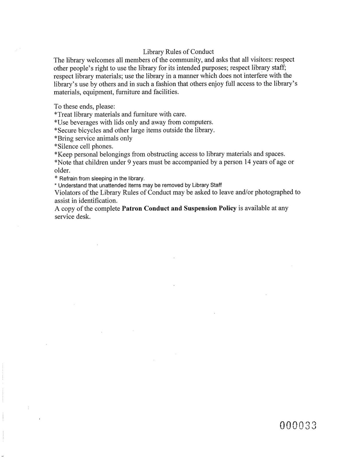 Workers at Santa Cruz Libraries already had the authority to remove patrons if their behavior was interfering with the ability of others to use Library equipment and or the facilities, but on the recommendation of staff, the language "Refrain from sleeping in the Library" has been added to the Library rules of conduct.